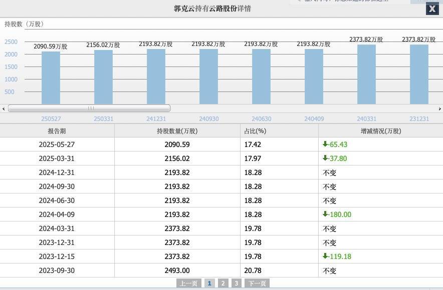 本次并非郭克云首次减持上市公司股份,在2023年,其持股数量还为2493万股,随后在2023年末减持119.18万股,2024年再度减持180万股。